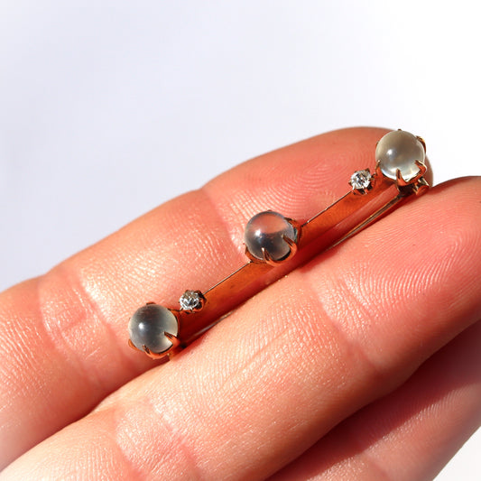 Edwardian Yellow Gold Moonstone Diamond Bar Brooch c1910