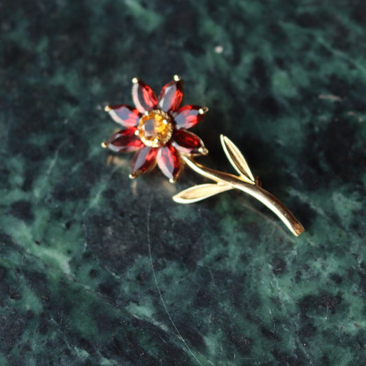 Estate 14k Gold Garnet Citrine Daisy Flower Brooch Atlantic Jewelry Co