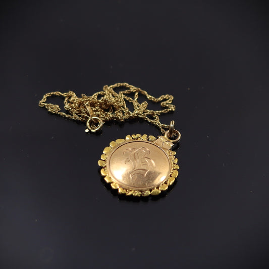 Edwardian Natural Gold Nugget Dust Crystal Locket Pendant Engraved B c1930