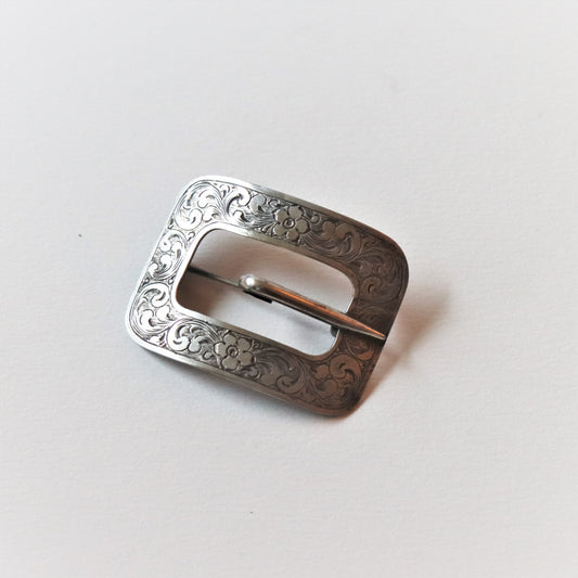 Large Art Nouveau Floral Sterling Silver Sash Scarf Buckle Brooch Signed c1910