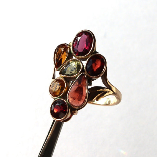Vintage British 9ct Multi Gemstone Righthand Statement Cocktail Ring