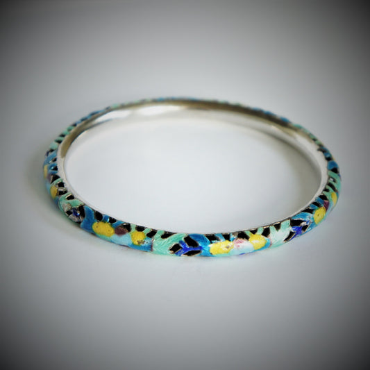 Vintage Blue Green Chinese Canton Enamel Silver for Export Openwork Stacking Bangle