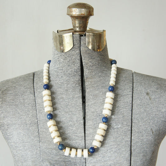 Estate Chinese Lapis Lazuli 10k Gold Graduated Carved Bead Necklace c1950-80