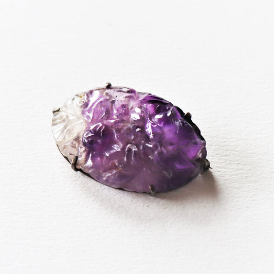 Chinese Art Nouveau era Carved Amethyst Sterling Silver Brooch c1910