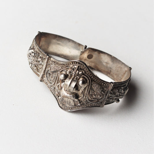 Vintage Bali Java Indonesian Sura Sterling Silver Filigree Dragon Cuff Bracelet