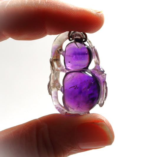 Vintage Sterling Silver Chinese Hand Carved Amethyst Fruit Plum Pendant