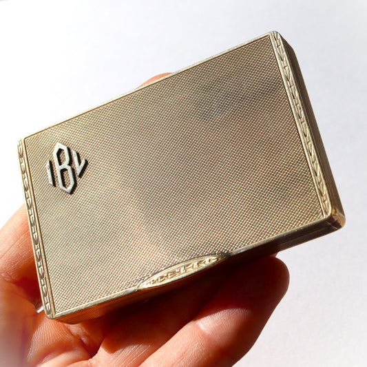 British Art Deco 1912 9ct Gold Engine Turned Snuff Box maker: G. Edward & Son Glasgow