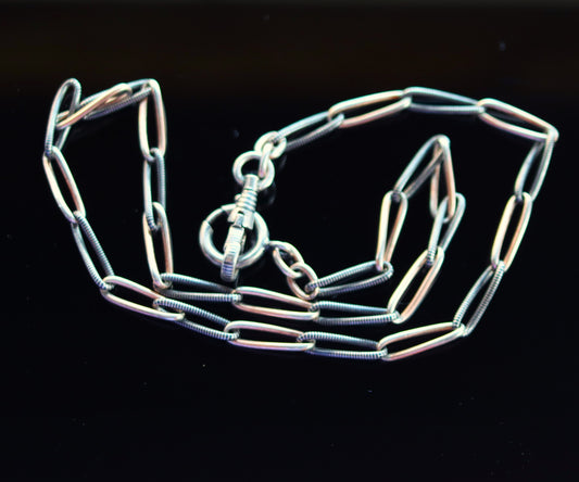 Victorian 800 Coin Silver Niello & Rose Gold Plate Pocket Watch Chain Necklace