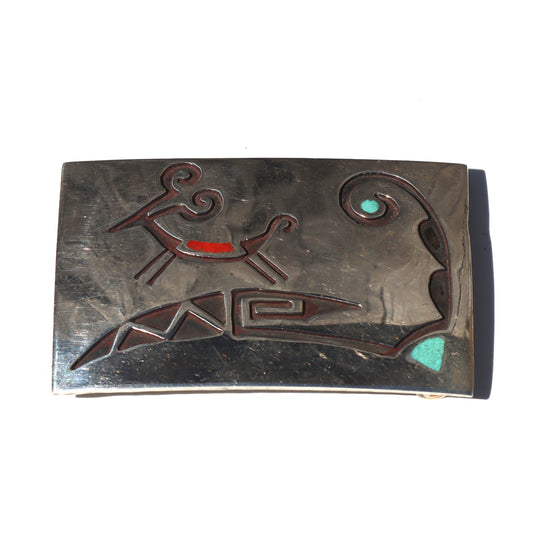 Vintage Hopi Overlay style Zuni Sterling Silver Inlaid Antelope Totem Belt Buckle