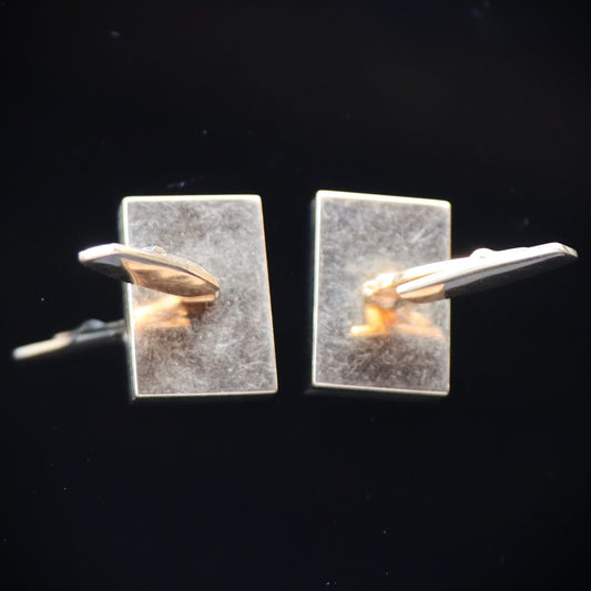 Vintage Norway Mid Century 925S Black White Guilloche Enamel Norne Vermeil Cufflinks