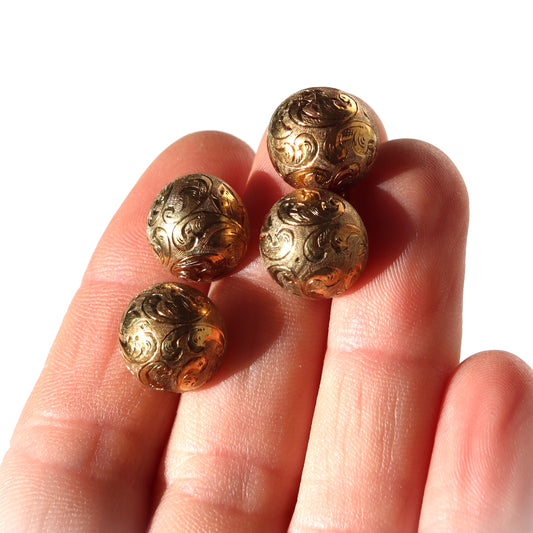 Art Nouveau 585 14k Yellow Gold Half Dome Scrollwork Cufflinks Buttons c1900