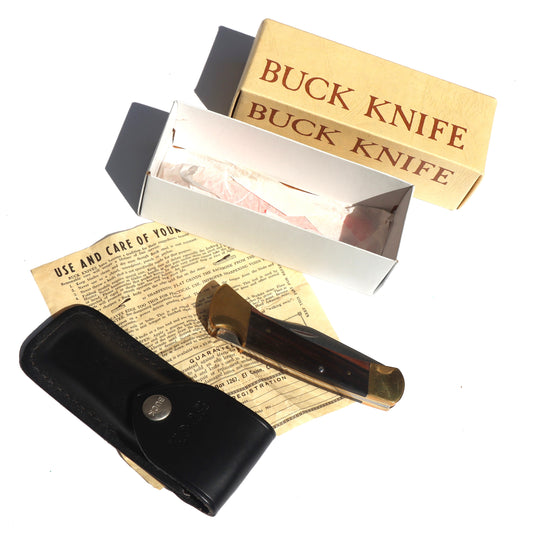 Estate Find - Never Used Near Mint in Box c1968 Buck Hunter 110 Lockback Knife w/ Leather Sheath