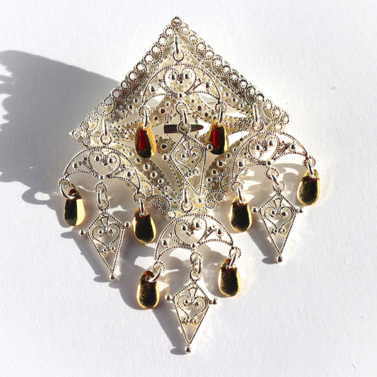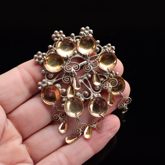 Vintage Norway 830S Sterling Silver Gold Vermeil Filigree Solje Scandinavian Brooch