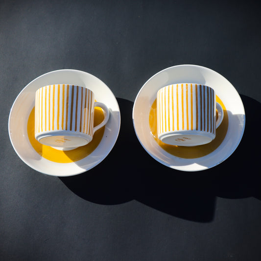 Pair of Swedish Rostrand Hertha Bengtson Kadett Mid Century Modern Yellow cups & saucers