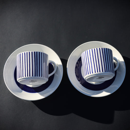 Pair of Swedish Rostrand Hertha Bengtson Kadett Mid Century Modern Blue cups & saucers