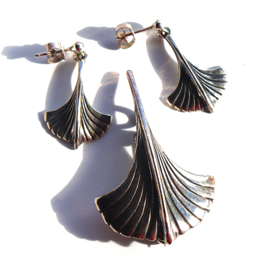 Mid Century Danish Modern Sterling Silver Frans Magnussen Viking Ship Brooch Earrings Set
