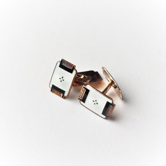 Vintage Norway Mid Century 925S Black White Guilloche Enamel Norne Vermeil Cufflinks