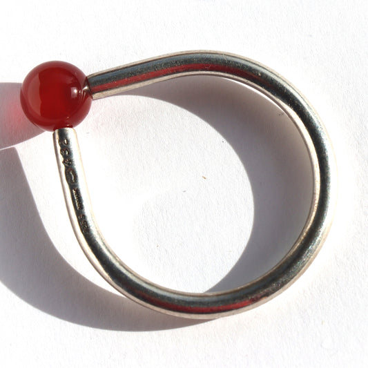 Danish Mid Century Modernist 925S Silver Signed Georg Jensen Carnelian Key Ring