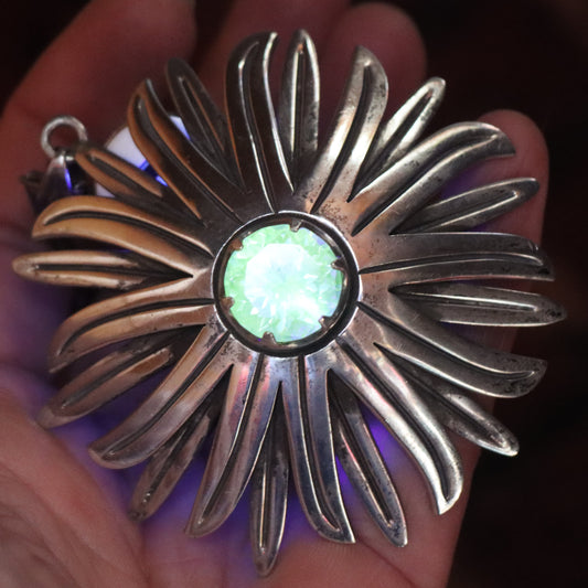 TAXCO Art Deco c1940 Sterling Flower Pendant Color Change lab Sapphire Sterling Baht Chain
