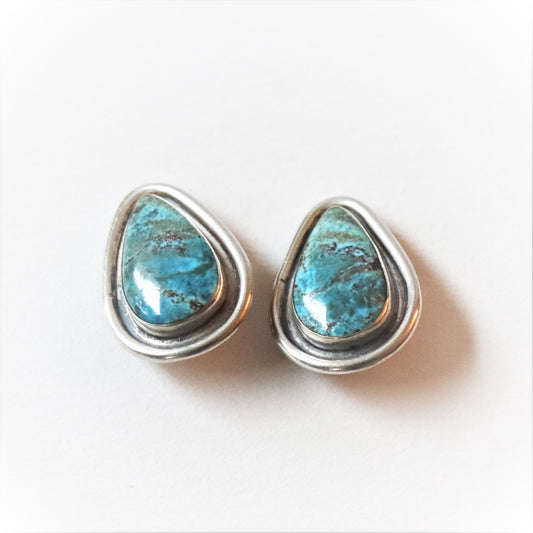 Navajo style Artisan Sterling Silver Slab Eilat Stone Clip Back Earrings