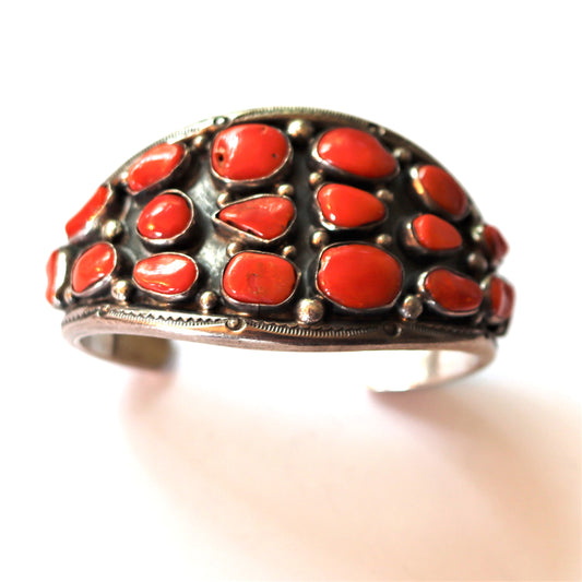 Vintage Large Signed Pueblo San Felipe pos Mary Chavez Coral Cluster Cuff Bracelet