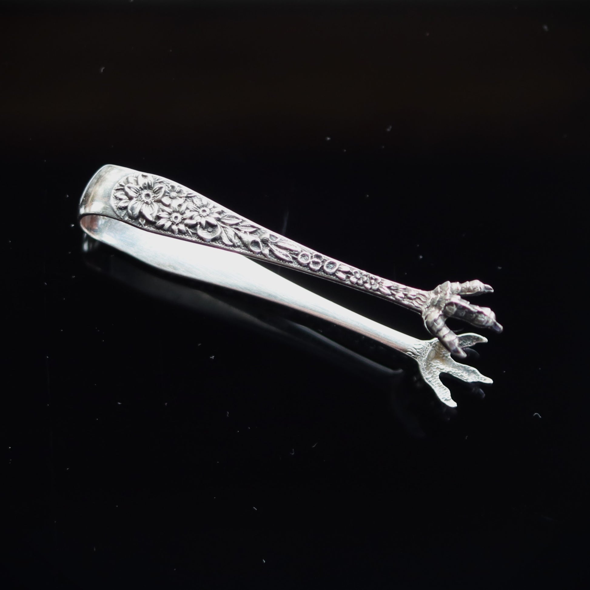 True Vintage Kirk & Son Sterling Silver Repousse Floral Pattern Sugar Tongs